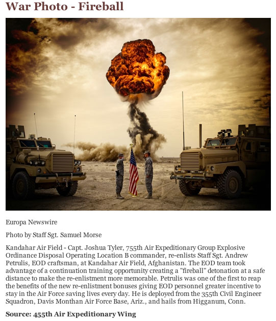 War Photo – Fireball April 4, 2010 Written by David White This caught my eye, then BOOM…it was gone 🙂 From here. Discussion (1 Comment) Brenda Burrell says: April 5, 2010 at 00:36 “saving lives every day” Reply Leave a Reply Cancel replyYour email address will not be published. Required fields are marked *Comment * Name * Email * Website Δ This site uses Akismet to reduce spam. Learn how your comment data is processed.