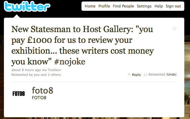 For a small fee (Just £1000) we will impartially review your exhibition. That £1000 assumes you have less than 30 images to look at, as we are pushed for time. Any images over 30 are charged at an extra £50/image. We will then publish the review somewhere on our blog, maybe. We do promise to REALLY LIKE YOUR WORK though, which could be a first.