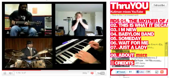 Check out Kutiman’s magic youtube mash ups…fun fun fun. There’s even a theremin in there. Friday bonus.