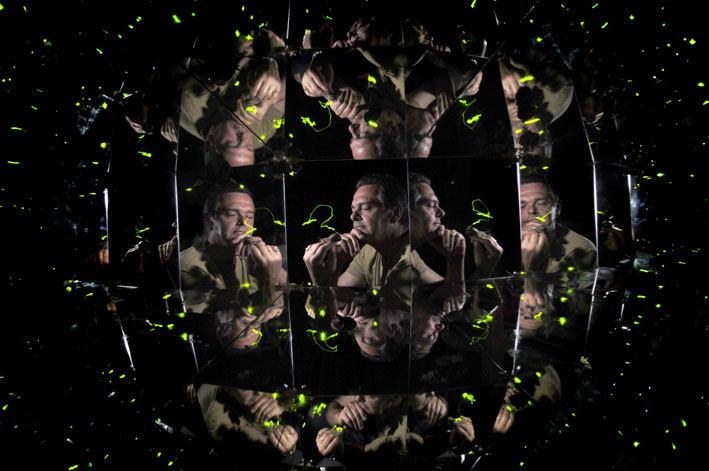 Written by David WhiteThis guy breeds edible snails. For some reason I thought it apt to photograph him in a home made kaleidoscope with led’s on the snails.