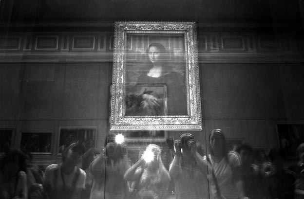 When I was in the Louvre a while back the French were much more laid back….any picture you want, even with flash….I reckon that on an average day the Mona Lisa gets lit by flash well over 50,000 times. I base this on the picture below, which I shot to prove my point…a half second exposure with two flashes going off. If that’s average then the figure for an 8 hour day is 115,200 times. I’d say 50,000 times is conservative.