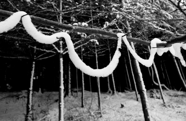 Nature’s tree decorations in our community woodland! This lovely garland of snow happened after a very serious frost that followed a snowfall, culminating in a thaw that saw the snow drooping off the branches.