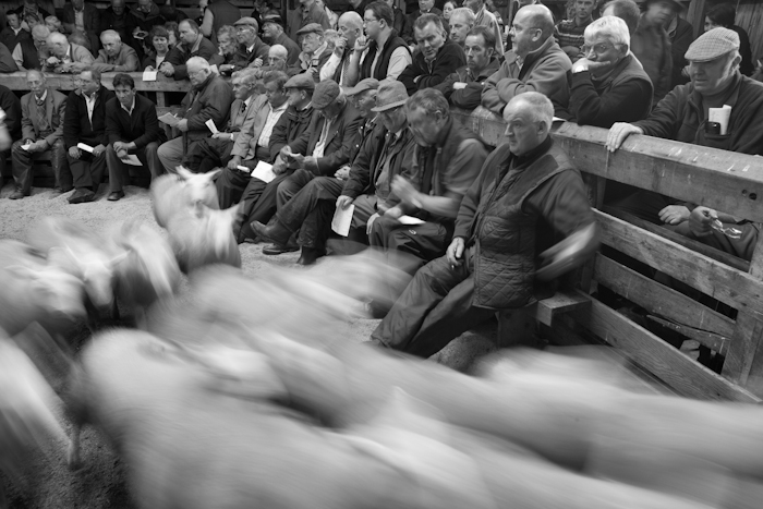 I’ve always wanted to photograph the Lairg Lamb Sale – the biggest one-day lamb sale in Europe with over 30,000 animals going through the sale ring in a single day, with non-stop buying going on at a rapid pace with a team of auctioneers doing a shouting relay. Its impressive stuff, visually and aurally.