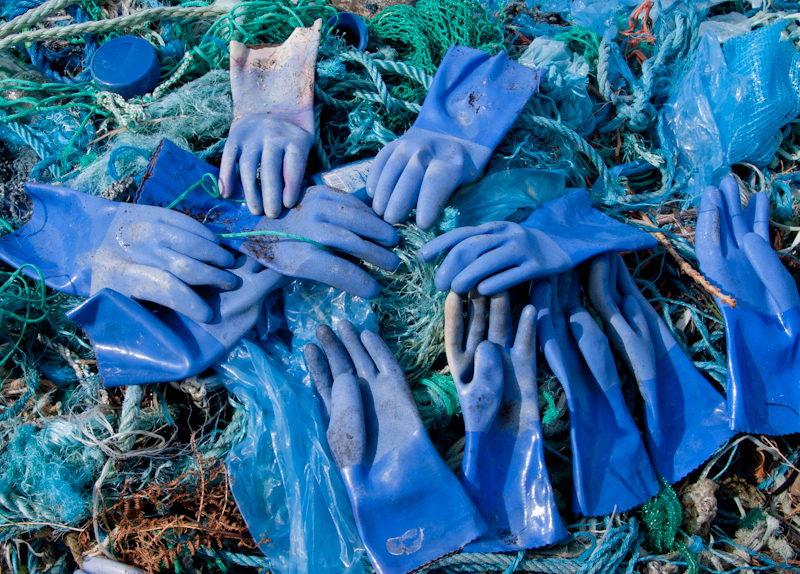 After several years of kayaking I realized this is a massive environmental problem. On one beach I visited someone had gathered up all the red plastic and piled it in one place at the east end of the beach, and the blue & green plastic in another spot at the west end. What was bizarre was the number of gloves, red at one end, and blue at the other.