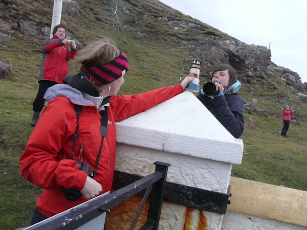 Cerian snapping a lighthouse as she gets snapped by other photogs snapping a bigger lighthouse. © The Hens