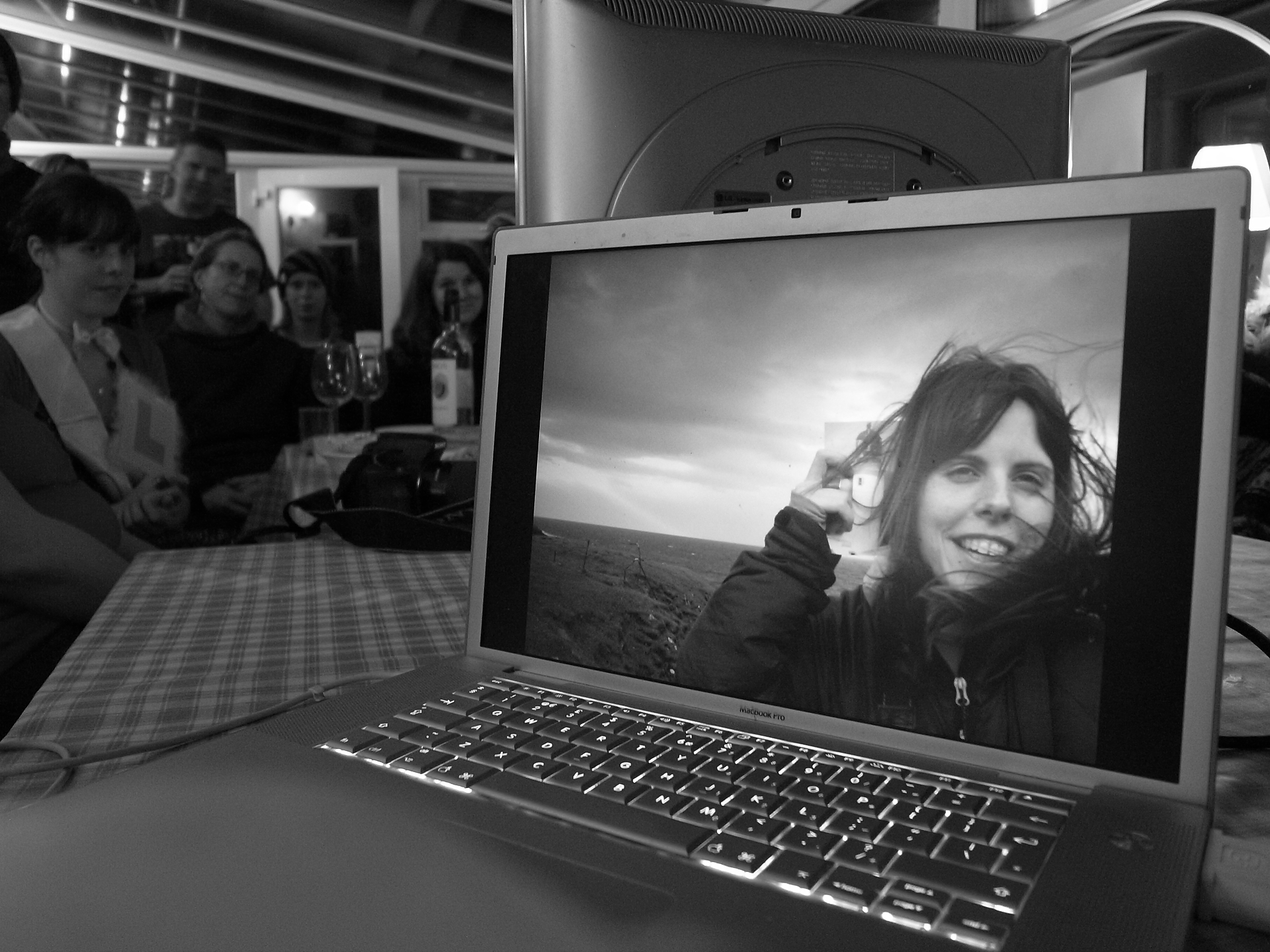 Cerian & lighthouse picture on my laptop as her pals watch the final slide show on the monitor. © John MacPherson