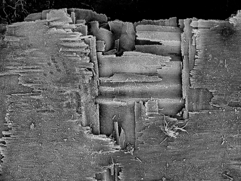 Before this one night of frost, the discarded piece of plywood had had some life or other, perhaps a builder’s sheathing layer, on a house. A good life.