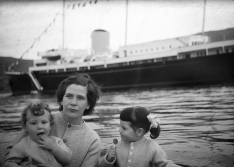 Dad thought we should all go out in the boat that evening to see the Royal Yacht so off we went, our little Seagull engine and me singing along together. We did a circuit of the yacht. I remember it was huge. Dad took a photo of us. You can see mum looks….well….somewhat perplexed. She was. I remember it vividly, and much to mum’s dismay, but to my utter delight, dad retold the story to me countless times in the years afterwards as he showed us the glass slides………………..