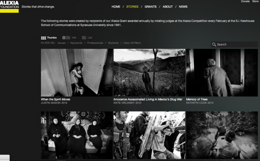 Welcome to our new website, created to share the incredible body of work that has come from the Alexia Foundation. In 1991, we awarded our first 5 student grants. Today, that number is 110. Since 1997, we have given grants to 18 professionals. In total, that translates into $700,000 and 128 funded projects. We would never have imagined that through our loss we could learn so much about our daughter’s passion. We have met the most extraordinary storytellers, our photographers, who uncover with powerful voices, keen eyes and thoughtful insights the important issues of our day. They are feeding the good wolf!’
