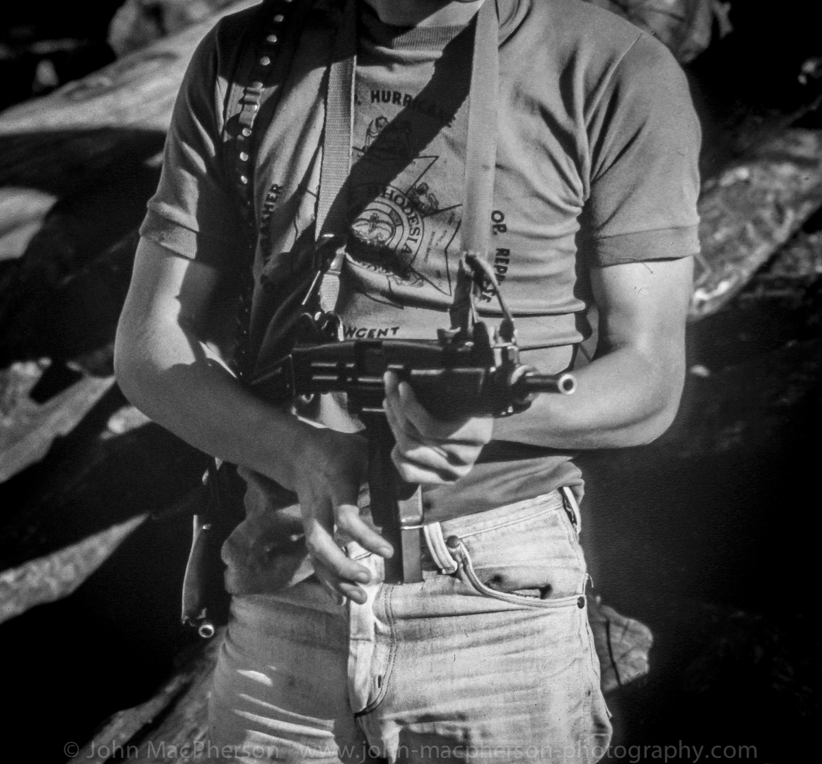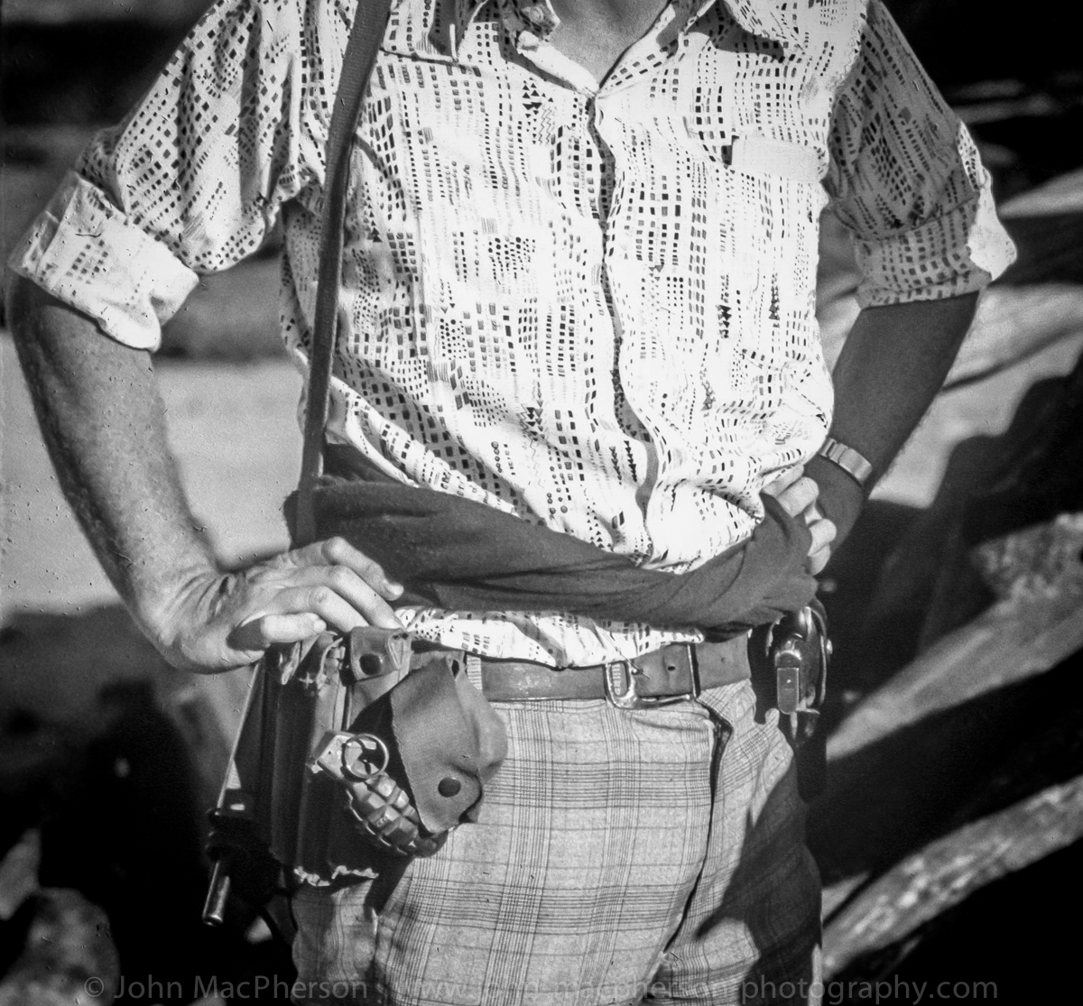 Then from a locked box in the rear he handed me an Uzi 9mm machine gun and several clips, and almost as an afterthought two grenades, passing a shortened FN 7.62 to my friend who had arranged this ‘outing’, and taking a second Uzi for himself which he clipped into a holder on the side of his door which allowed one-handed use and the ability to spray an arc of bullets on the driver’s side. “If you see ANYONE charging out of the bush around us as we’re driving just fire the Uzi at them…” he added casually.