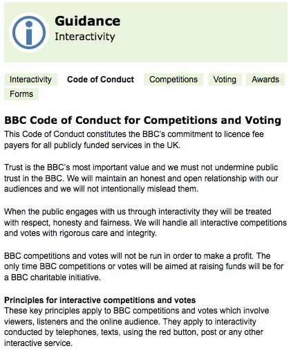 Now what do you think the BBC ‘s responsibilities actually are with regard to their dealings with their ‘customers’? Here’s their Code of Conduct specifically covering competitions: