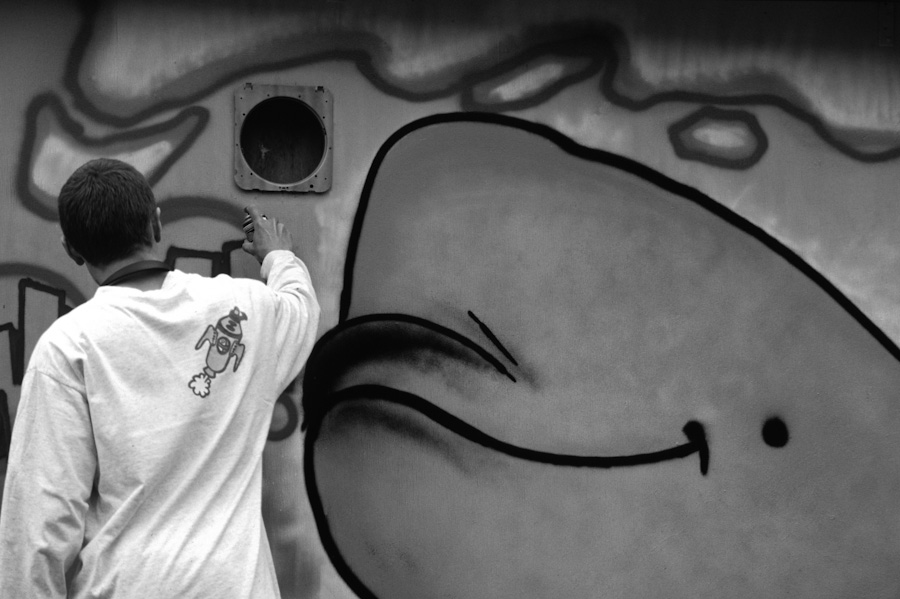 A few years back I was photographing at an event in a run-down Edinburgh housing estate. Think Trainspotting, but in 3D and less colourful. And there was a graffiti artist painting a huge whale mural on a wall, a whale that had a giant smile on its face.