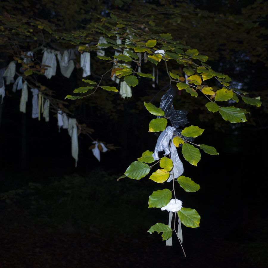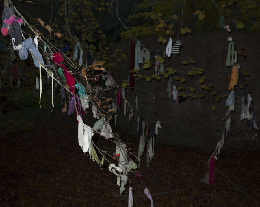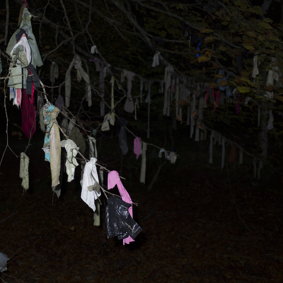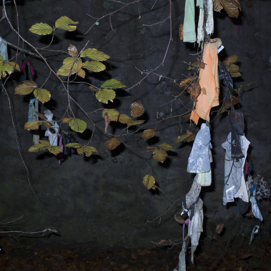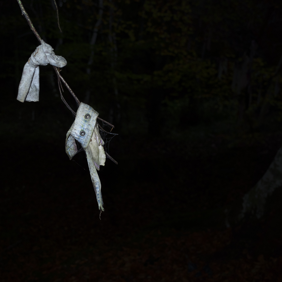 Earlier this evening I took my son and his pal for a cycle through the woods behind our house to see another, much less visited well concealed in the forest. It was growing dark with the shorter days, so I thought I’d try some flash, with my compact camera. It was ‘atmospheric’.