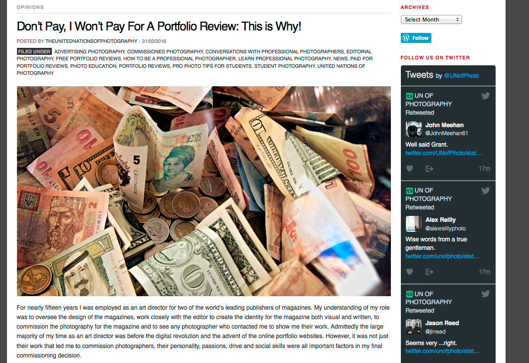 Written by John MacphersonGrant Scott at The United Nations of Photography has just published a review of the process of providing Portfolio Reviews, so Duckrabbit has decided to review it.