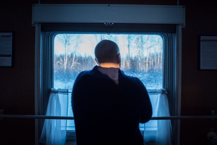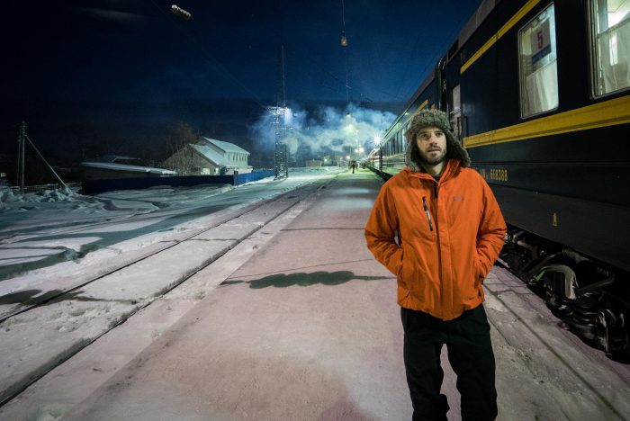 I’m sipping peppermint tea from a ‘Doctor Who’ flask. Hunched in my jacket on the platform. It’s -15C, the middle of Siberia in December, and it’s only going to get colder the further we go.